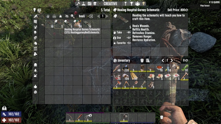 Gives the bedroll a healing ability while standing on it. Adds Healing Hospital Gurney AND Healing Hospital Bed.