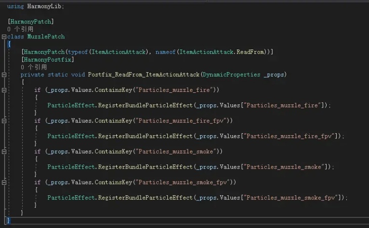 This mod register the resource path you put in muzzle particle properties for you, so that you can make your flash shine by setting those properties. Those properties are as follows:
