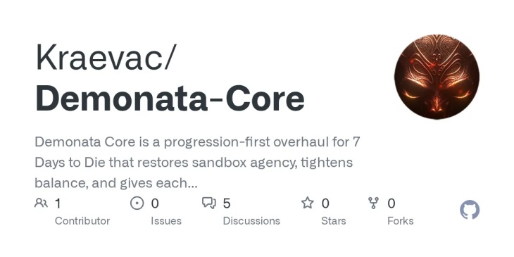 I’m excited to drop the official launch of Demonata Core — a small mod for 7 Days to Die designed to bring back the sandbox feel, reward skillful play, and raise the stakes.