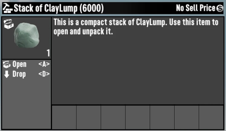 Clay, Sand, Small Stones, and Wood can each be crafted into Bulk (6000).