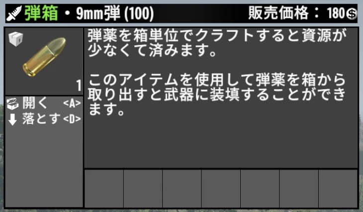9mm弾、.44マグナム弾、7.62mm弾、ショットガンの弾をそれぞれ「バルク・100」にできます。
