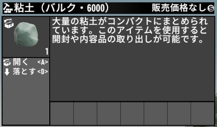 粘土、砂、小石、木材をそれぞれ「バルク・6000」にできます。