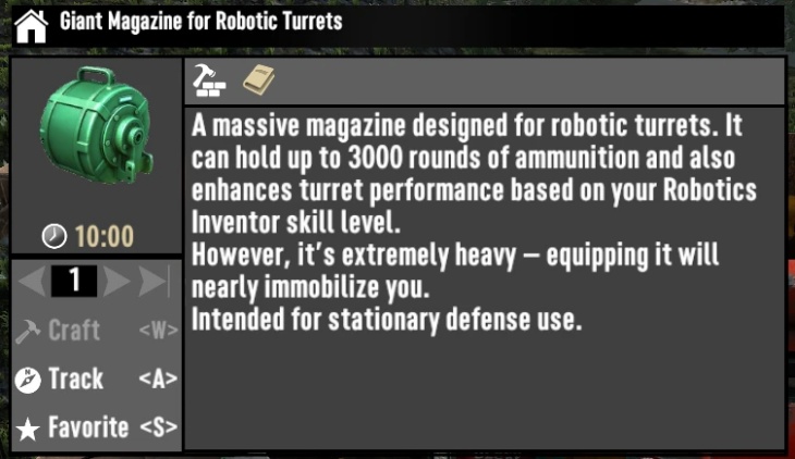 The robotic turrets require reading quite a number of crafting books before you can build one, yet their firepower is rather weak for the effort.