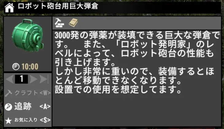 ロボット砲台は、作るまでにはかなり多くのクラフト本を読む必要がありますが、その割には殲滅力が弱いです。