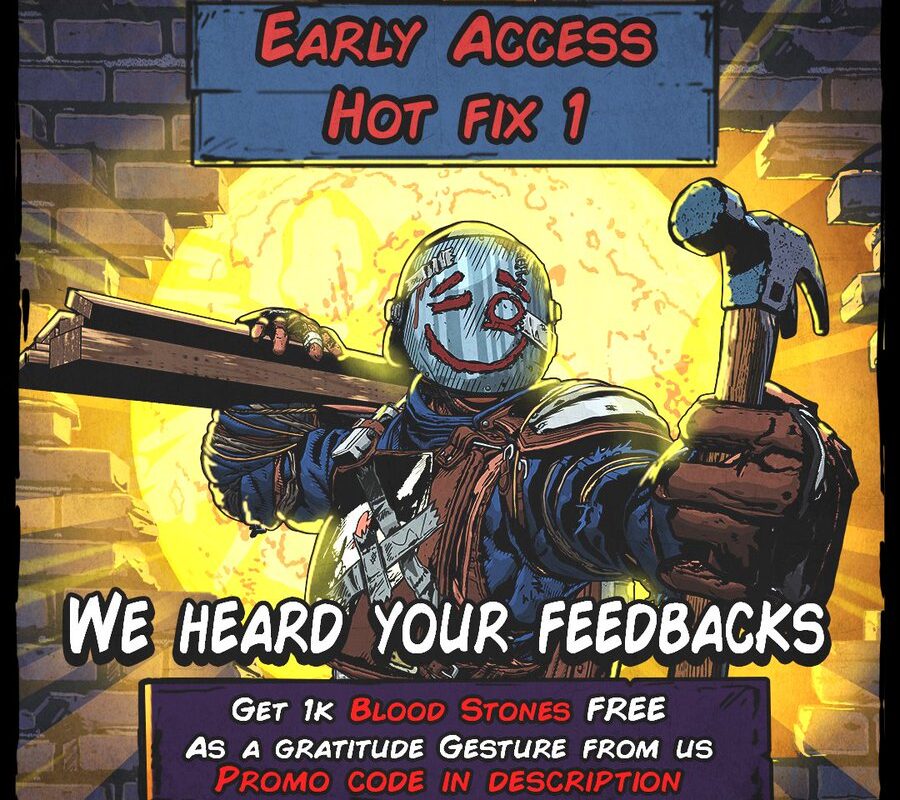Hot Fix 1 for 7 Days Blood Moons is live with balance tweaks, bug fixes, and quality of life updates. As a thank-you, redeem 1K Blood Stones in-game with code 7DBM1STPATCHGIFT.