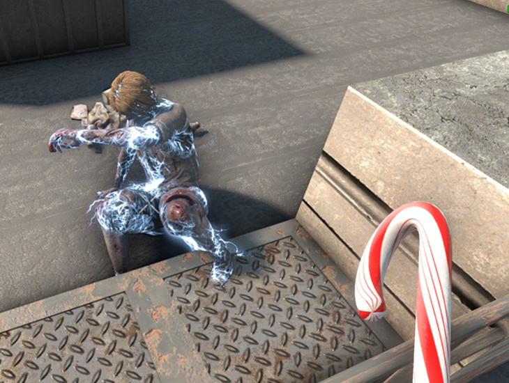 - The Shocking Candy Cane Club isn’t just a sweet treat; it’s the ultimate zombie party favor! Add the burning shaft mod and it stops just short of sending your enemies a Christmas card. Now, not only does it deliver a shocking electric ‘hello,’ but it also adds a nice, warm, burning glow to their soon-to-be-corpse. It’s truly a gift that keeps on giving… them third-degree burns