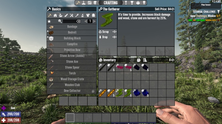 - The Gatherer: Increases block damage and ore, stone and wood harvest of melee weapons by 25%