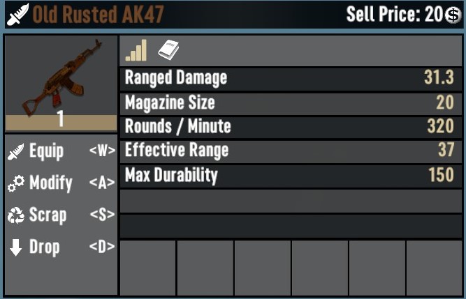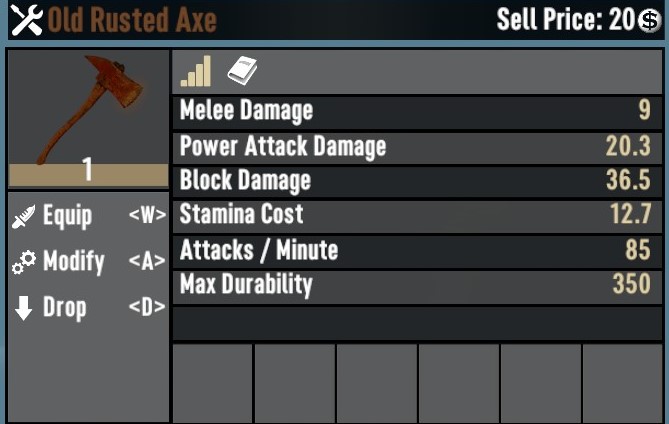Removes the stone tools / weapons from the loot table and replaces them with rusty weapons and tools ive made. Server Side friendly. There is 2 options, Loot Only or Crafting with progression as well. only use 1 or the other. There are more tools and weps then the provided pictures like the Rusted Pick Axe, Shovel, Wrench, Rifle, Pistol and so on.