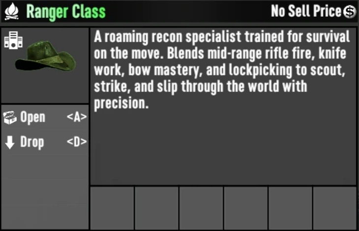 A versatile recon and mid-range combatant who blends scouting, ranged combat, and mobility. With rifles, knives, and lockpicks, the Ranger moves fluidly through the world, clearing POIs and engaging threats from multiple distances.